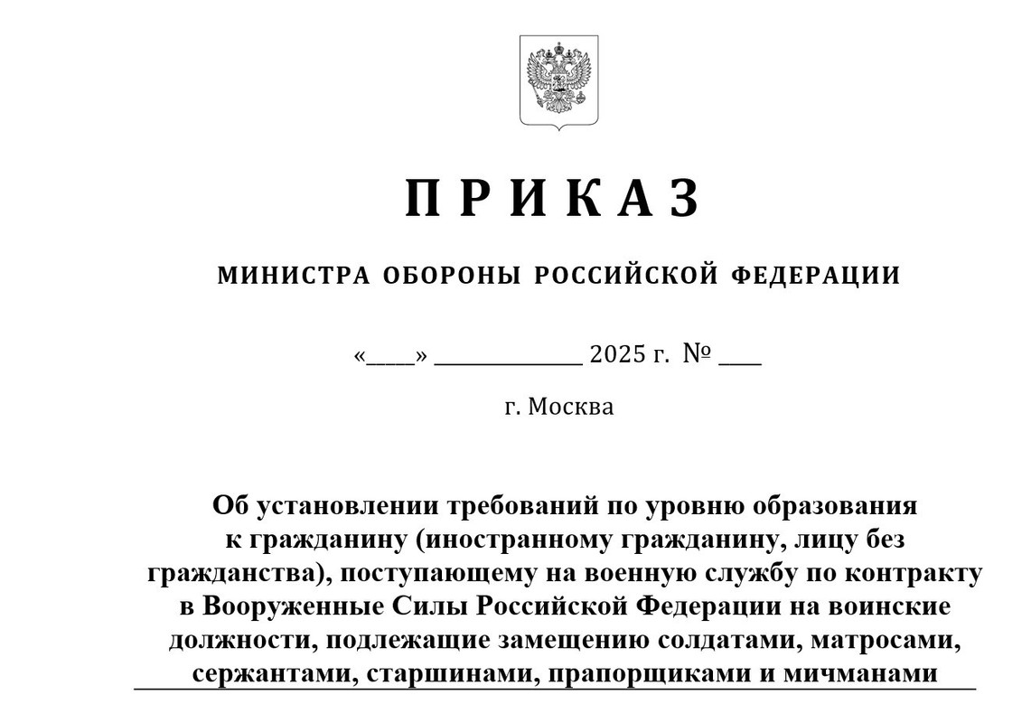 Проект приказа Минобороны новые требования к образованию для контрактников