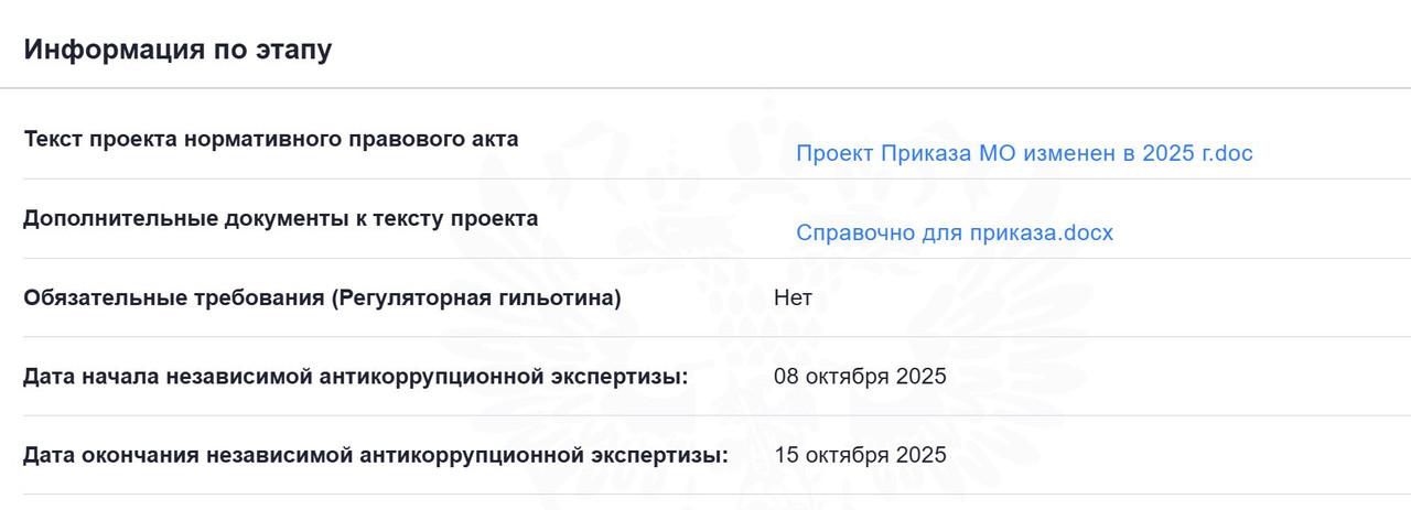Опубликован текст проекта ПРИКАЗА МИНИСТРА ОБОРОНЫ РОССИЙСКОЙ ФЕДЕРАЦИИ Об установлении требований по уровню образования