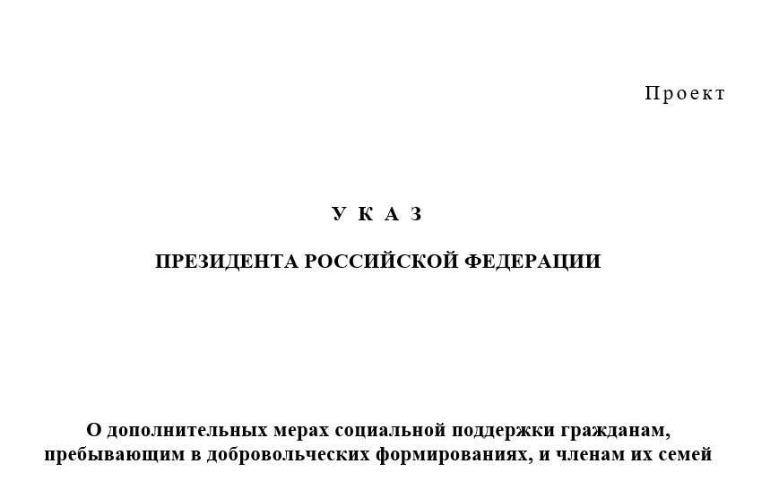 О дополнительных мерах социальной поддержки гражданам, пребывающим в добровольческих формированиях, и членам их семей