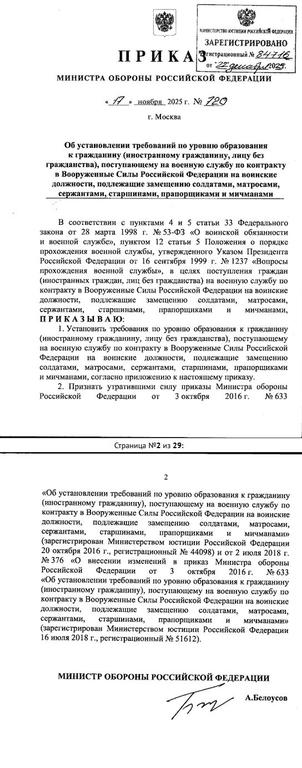 Приказ Министра обороны Российской Федерации от 17.11.2025 № 720
