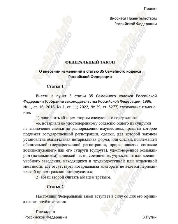 О внесении изменений в статью 35 Семейного кодекса Российской Федерации